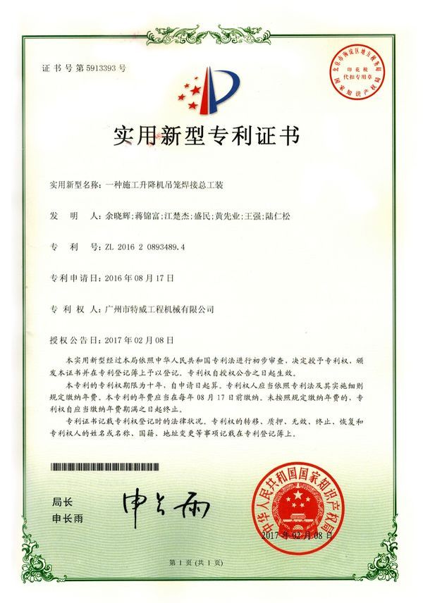 廣州市特威工程機(jī)械有限公司地處廣州市白云區(qū)神山鎮(zhèn),廣清高速神山出口附近,是一家施工升降機(jī)的專業(yè)生產(chǎn)廠家。公司成立于2011年,占地100000多平方米,注冊(cè)資金1060萬(wàn)元,現(xiàn)有員工300余人其中工程技術(shù)人員33人,高級(jí)技術(shù)人員52人。